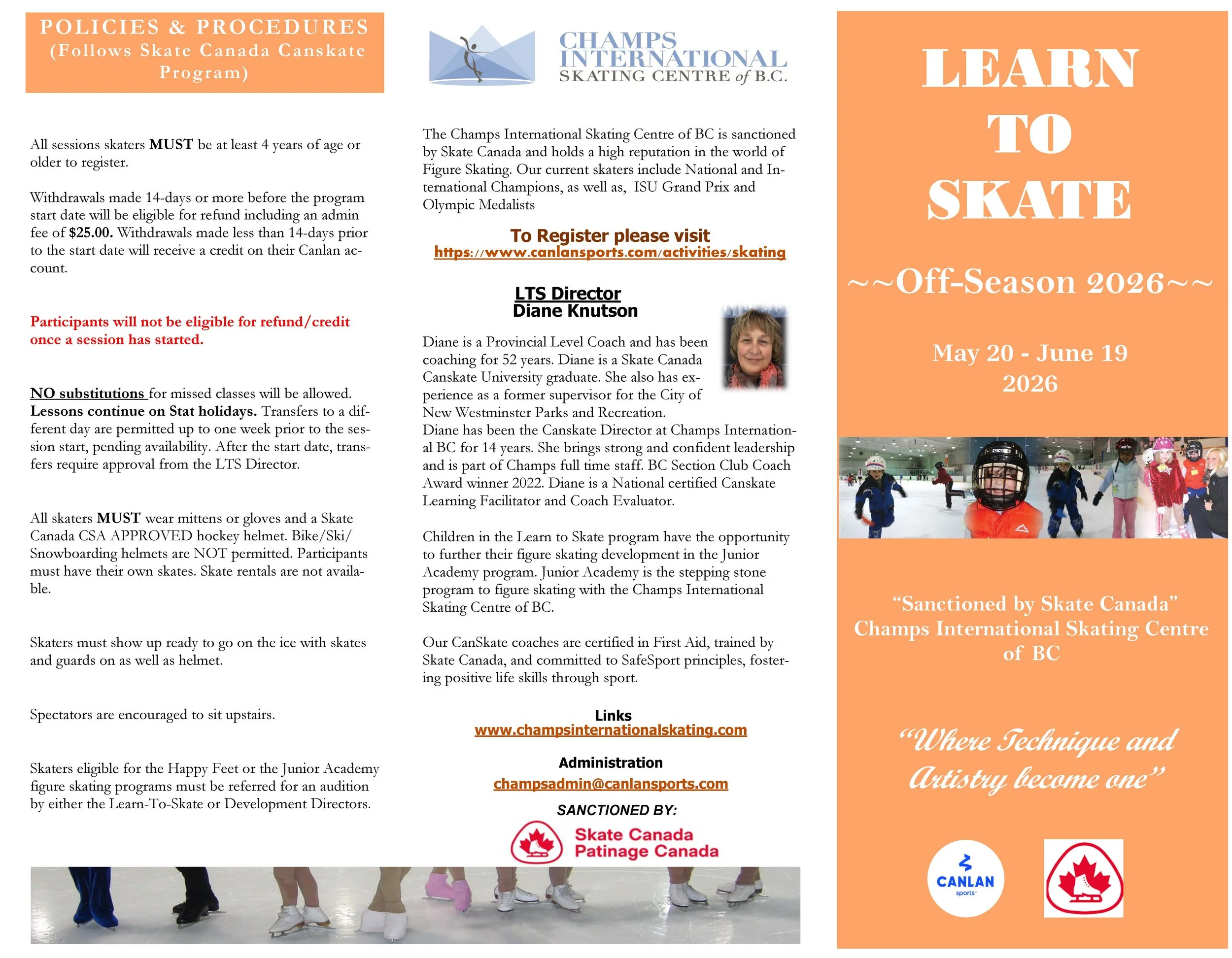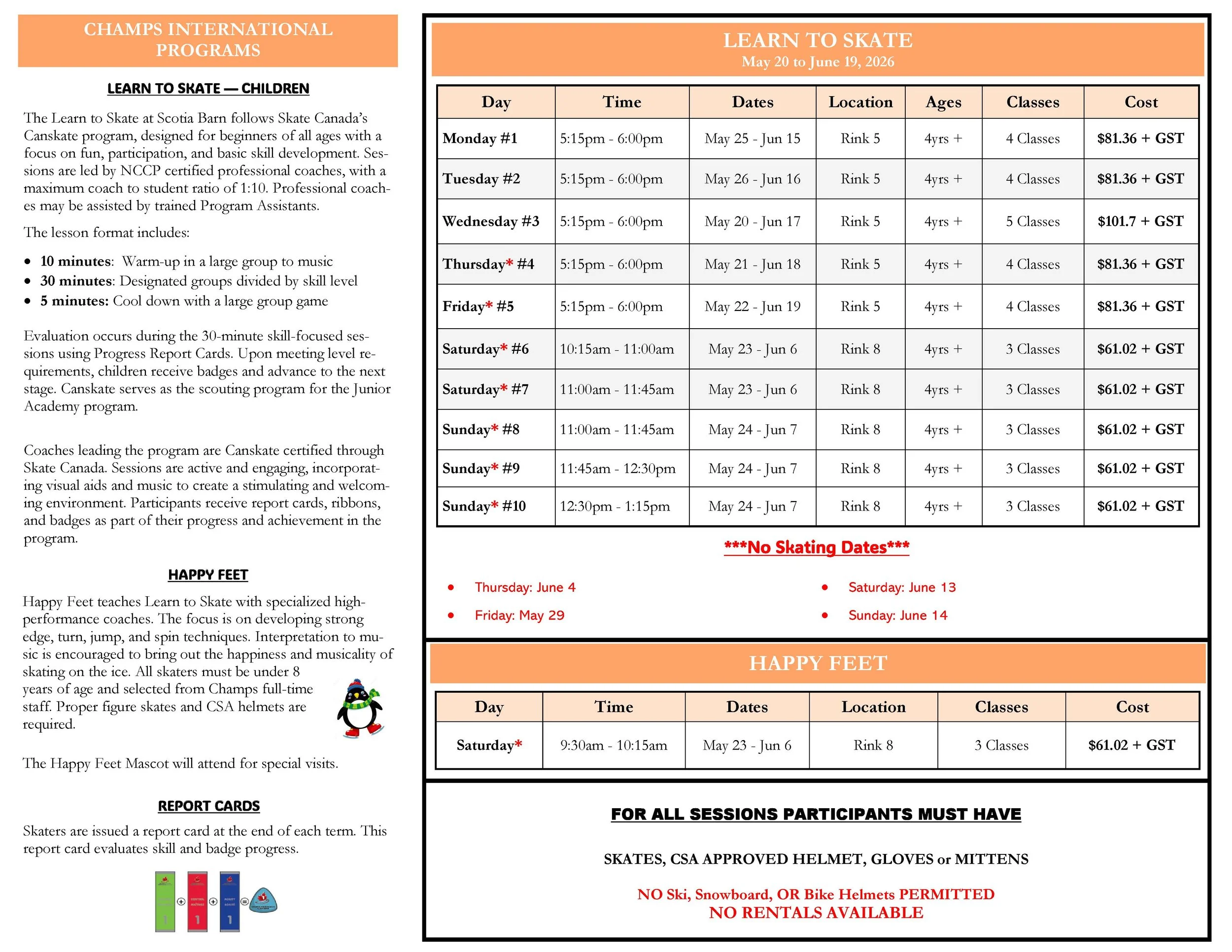 off-season 2026 LEARN TO SKATE SCHEDULE & INFORMATION